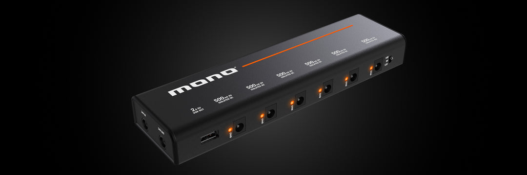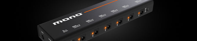 MONO Power Supply is the latest addition to the MONO PFX line and is an ultra-slim, low noise, expandable pedalboard power supply. MONO Power Supply is available in three sizes and features everything you need to connect, power and expand your pedalboard.